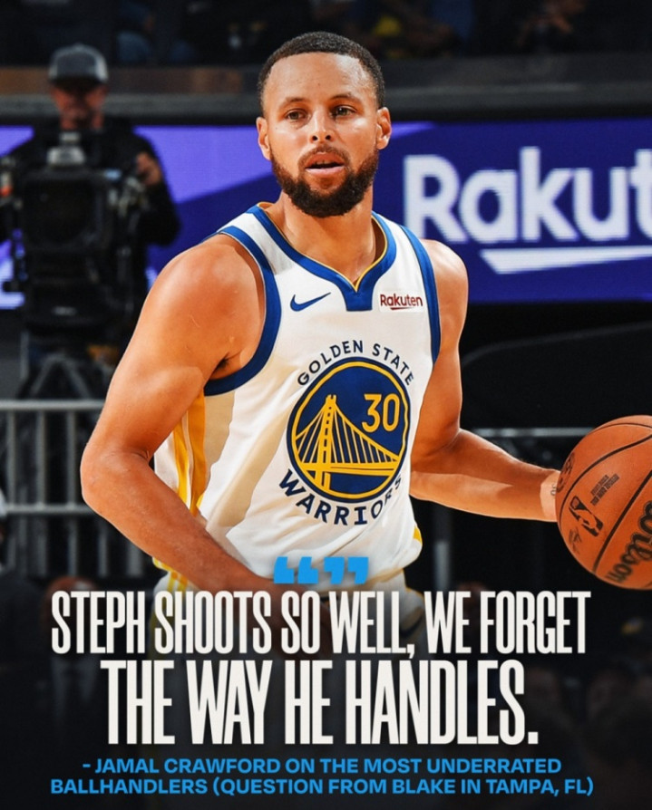 当被问及有没有哪些球员因为他们的控球技术被低估而需要更多的认可时,克劳福德说道:“我会选择库里。他的投篮如此出色,以至于我们常常忽略了他控球的技巧。而这些技巧与他的投篮息息相关。不仅仅是接球就投那么简单。他会用假动作迷惑你,或者快速抬头让你以为他要投篮,然后突然突破上篮或完成其他动作。正是因为他出色的控球技术,才使得他在场上几乎无人能挡。”